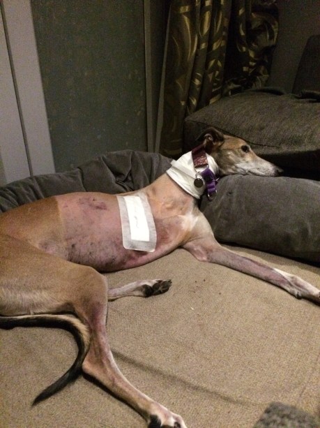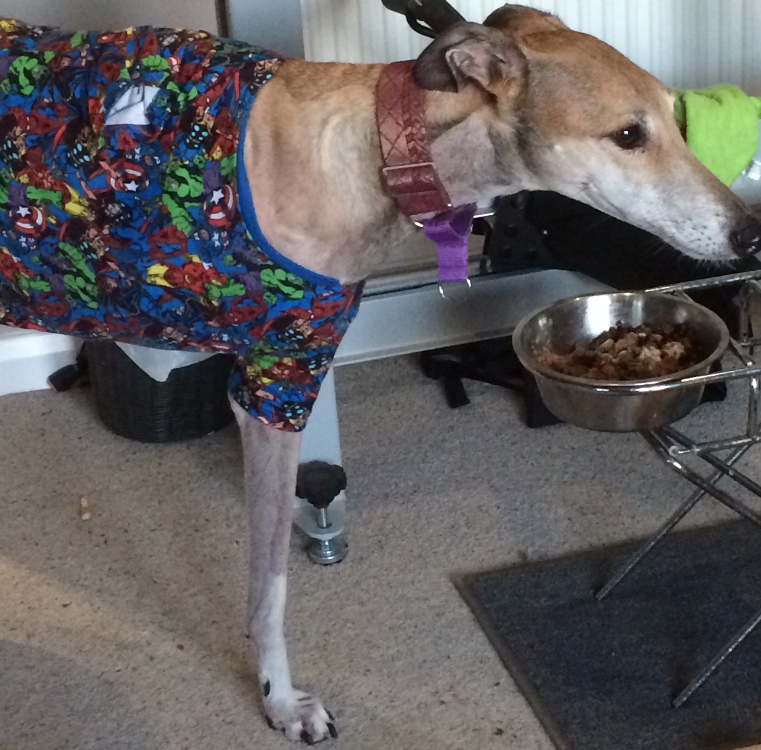 Apparently I’ve paid too much attention to my wound and now I have to wear a tshirt to cover it up. Spoils all my fun! It was this or a buster collar but could she have got me a plain tshirt instead? It’s an avengers tshirt, don’t make me angry otherwise I’ll burst out of it like the hulk – you watch!